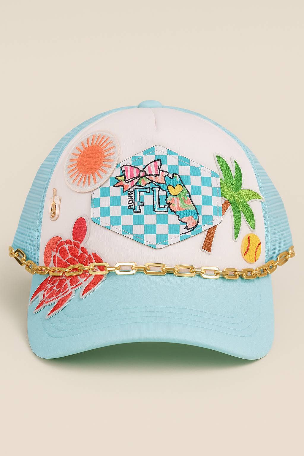 Show off your Florida pride in style with our Florida Trucker Hat! This classic mesh-back cap is perfect for sunny days, road trips, beach hangs, and everything in between. Designed for adults and featuring a bold Florida design, this hat comes complete with a detachable hat chain for that extra edge.